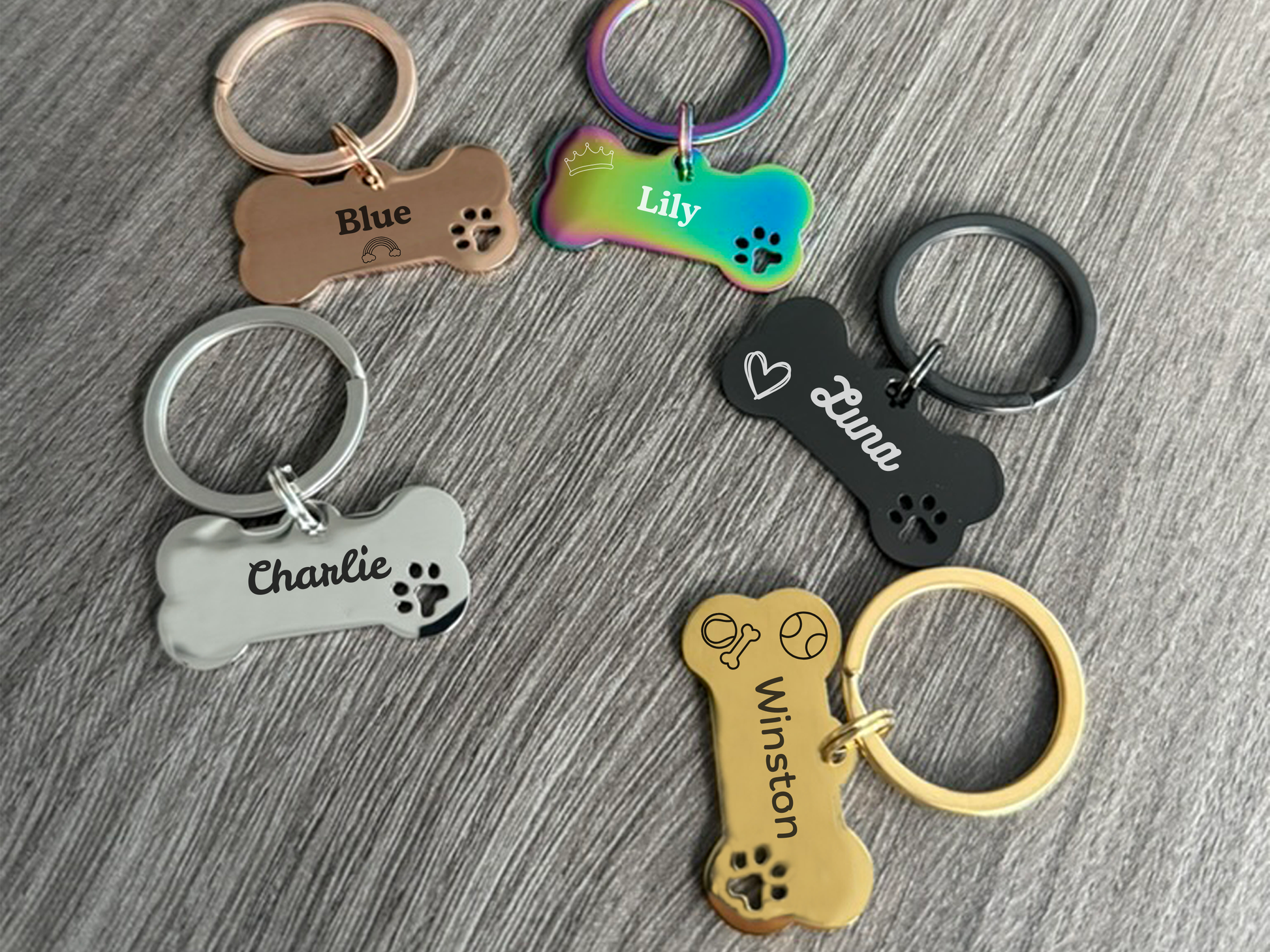 Color Options: Choose from Rose Gold, Gold, Silver, Blue, Black, or Rainbow to match your dog’s personality.