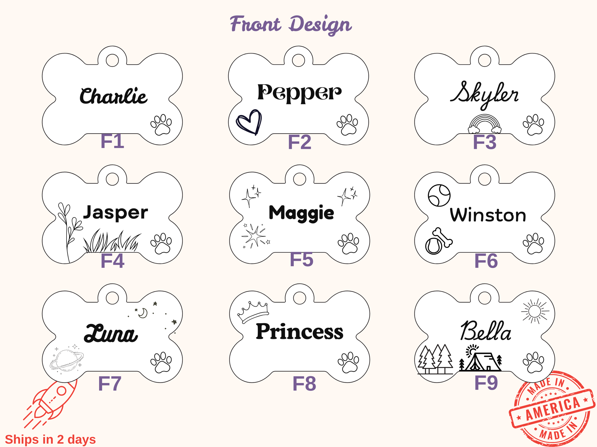 Make it truly yours by engraving both sides of the tag with: