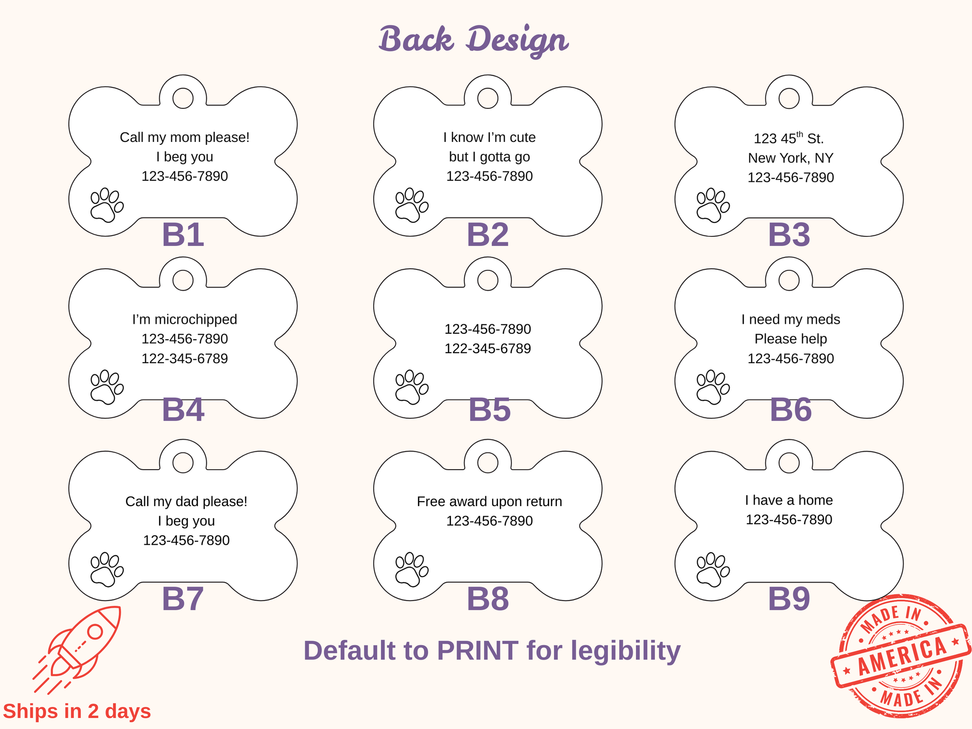 Front: Pet Name + Phone Number (optional)